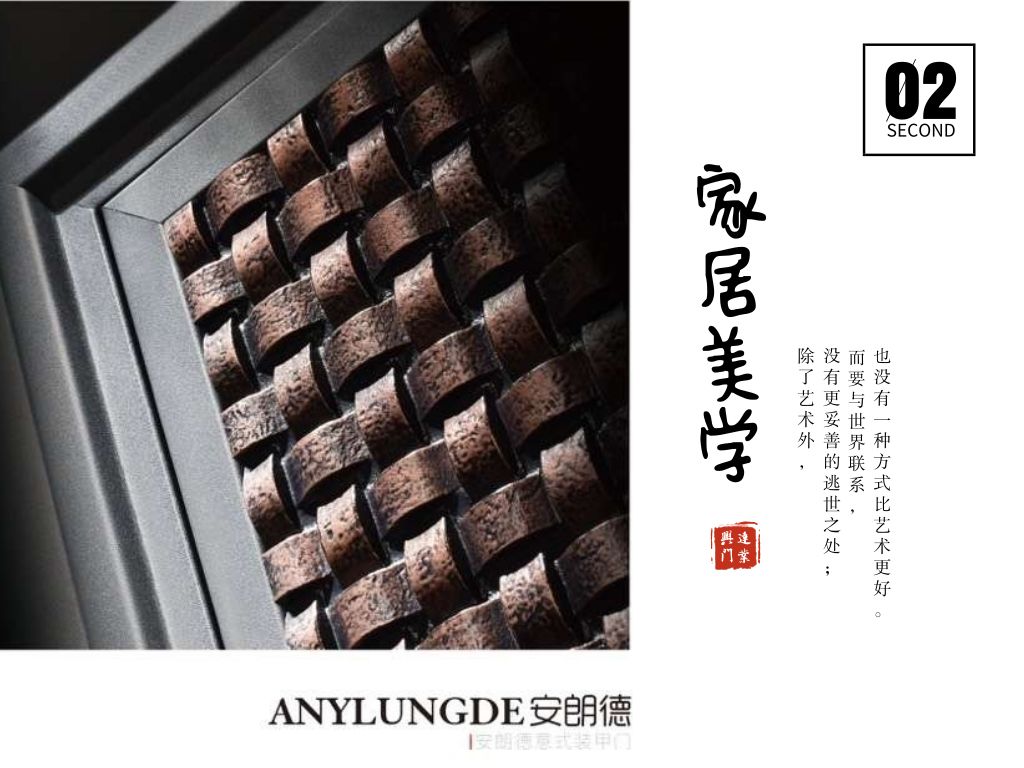 -美-学- -安-全- -品-质- —— “ 装甲门 “ 是近年来于业界是非常火爆的名词,那么,究竟该 “新贵“ 如何分类,又有哪些优劣、保养等等问题;今天就跟大家分享装甲门的系列知识。 装甲门发源于基督教, 在欧洲应用广泛,主要特点是门扇中间为坚固的钢结构体(国内称装甲系统),前后表面各覆盖一层漂亮的且易于更换的饰面材料,饰面可用铝、铜、玻璃、复合木、实木等材料。 兴达安朗德 为眼观独到的你专属定制 安朗德装甲门以现代国际化设计理念为核心,采用精工制造工艺,以极致专注、严谨的态度打造符合现代潮流的精工装甲门。 01 装甲门结构 装甲门:是一种可于装修配套的一种门,一般可由用户提出要求,防盗性能采用中间的钢板来达到,可根据用户要求选用不同颜色、材料、线条和图案等;还能与室内装修融为一体,不再象钢制门那样冰冷的不协调。它是以钢木为结构,门扇四周由钢板扣合而成(或焊接),门框一般为钢套上装饰面,表面做免漆处理或者油漆处理而成的门。 02 装甲门特点 装甲门也是一种新型防盗门。以钢木装甲门门为例,它是工艺木质面板内夹钢芯的结构设计,利用木制材料可塑性强的特点,发挥木制作加工灵活的工艺特长,对钢制内核施以包装,追求典雅、刚柔相济、内外具精,为高品位顾客提供更多选择。 装甲门防盗性强,坚而弥美,装饰性强,防盗防火,一门两用,还具有防变型、防潮、防湿、隔音、保温的特点。 装甲门优点 1、具备亲切外观及钢门坚固的本质,配上专业防盗锁则成了一扇美观的装甲防盗门。 装甲门保养 1、门庞大而厚重,因天气变化引起的冷缩热涨及经常闭合均会产生些许变位,请定期检查调整(根据前页门铰链安装的方法调整,一般门与门框的配合间隙最佳为1.5mm-2.5mm)。 2、装甲门擦洗时禁用强碱、强酸或其他化学溶解剂。建议半年按照下列方法清洁一次: 用中性洗涤剂与水按5%的比例调成擦拭液; 用柔软抹布沾上擦拭液擦拭铸铝门表面及门框的污秽; 再以清水擦拭清洁; 用柔软干布擦干水分。 兴达安朗德意式装甲门系列,它把自然之美融入人文的时尚,打造出装甲门臻品。自问世以来,凭借着优越的实用性能受到了广大消费者的认可。 从自然中来,归自然中去 以一种温暖的方式 继续去记录人们独特的生活…… 所有的出众都是因为坚持 兴达执着匠心打造每一樘门 印证最好的爱 好门,就选兴达装甲门系列知识 ——